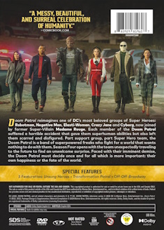 Description:  Doom Patrol reimagines one of DC's most beloved groups of Super Heroes: Robotman, Negative Man, Elasti-Woman, Crazy Jane and Cyborg, now joined by former Super-Villain Madam Rouge. Each member of the Doom Patrol suffered a horrible accident that gave them superhuman abilities but also left them scarred and disfigured. Part support group, part Super Hero team, the Doom Patrol is a band of superpowered freaks who fight for a world that wants nothing to do with them. Season 4 opens with the team unexpectedly traveling to the future to find an unwelcome surprise. Faced with their imminent demise, the Doom Patrol must decide once and for all which is more important: their own happiness or the fate of the world.
