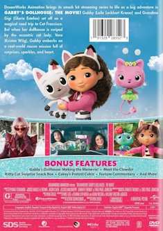 *** Deleted Scene: "Vera Meets Cakey Cat" *** Gabby's Dollhouse: Making the Meowvie! *** Pawsome Performances *** Meet the Clowder *** Kitty Cat Surprise Snack Box *** Cakey's Pretzel Cabin *** Feature Commentary with Director/Story Writer Ryan Crego, Producer Steven Schweickart, Visual Effects Supervisor M. Scott McKee, Head of Story David Colman, and Head of Character Animation CJ Sarachene