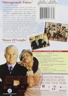 The hilarious Steve Martin (FATHER OF THE BRIDE) and Academy Award-nominee Queen Latifah (Best Supporting Actress, 2002, CHICAGO) star with Eugene Levy (AMERICAN PIE) in the laugh-out-loud hit comedy BRINGING DOWN THE HOUSE. Peter Sanderson (Martin), a divorced, straitlaced, uptight workaholic attorney, meets a brainy bombshell lawyer in an on-line chat room and they make a date. Expecting his soul mate, he opens the door and finds himself face-to-face with Charlene (Latifah) -- a wild and crazy soul "sister" who's just escaped from prison and wants Peter to clear her name. But Peter wants absolutely nothing to do with her, and that prompts Charlene to turn Peter's perfectly ordered life totally upside down. Hysterical complications abound and Peter soon finds out he may need Charlene just as much as she needs him. It's a houseful of fun your family will enjoy again and again. |